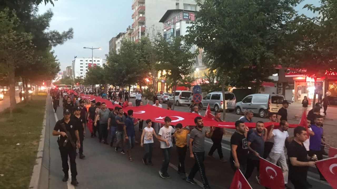 100 metrelik bayrakla yürüyüş yapan binlerce sporcuya yol boyunca esnaf ve vatandaşlar alkışlarla büyük bir destek verdi. Gençlik Hizmetleri ve Spor İl Müdürlüğü 15 Temmuz Demokrasi ve Milli Birlik Gününde sportif etkinlik ve organizasyon yaptı. Konuyla ilgili olarak konuşan İl Müdürü Halil Eren; 'Batman halkıyla birlikte gençlerimizle, 2. yıl önce olduğu gibi, bugünde hain darbe girişimine karşı canımızı göz kırpmadan feda edeceğimizi meydanlara çıkarak gösterdik. Vatanımızın bir karış toprağına kimse el uzatamaz. Bu vatan için canımızı seve seve veririz. Türkiye'de iç ve dış güçlere karşı dimdik ayaktayız.' dedi. RECEP FIRAT