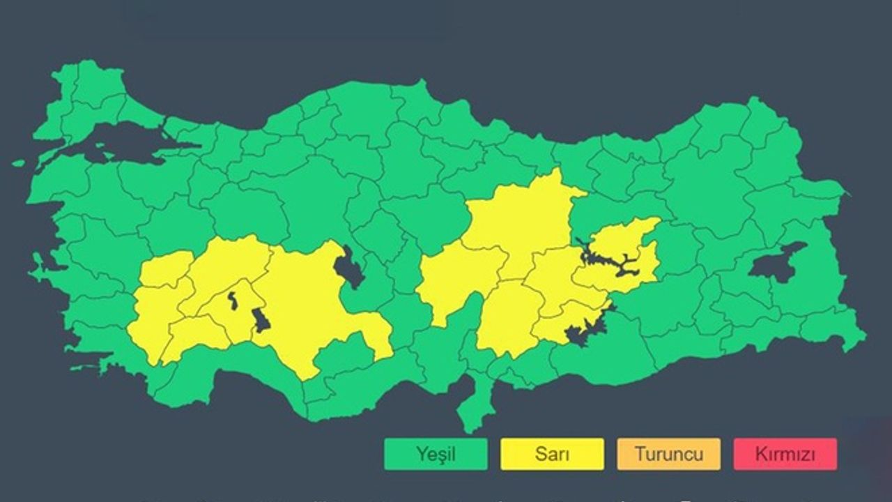 Uyarı alan iller şöyle; Adıyaman, Afyonkarahisar, Burdur, Denizli, Elazığ, Isparta, Kayseri, Konya, Malatya, K.Maraş, Sivas, Tunceli ve Uşak.