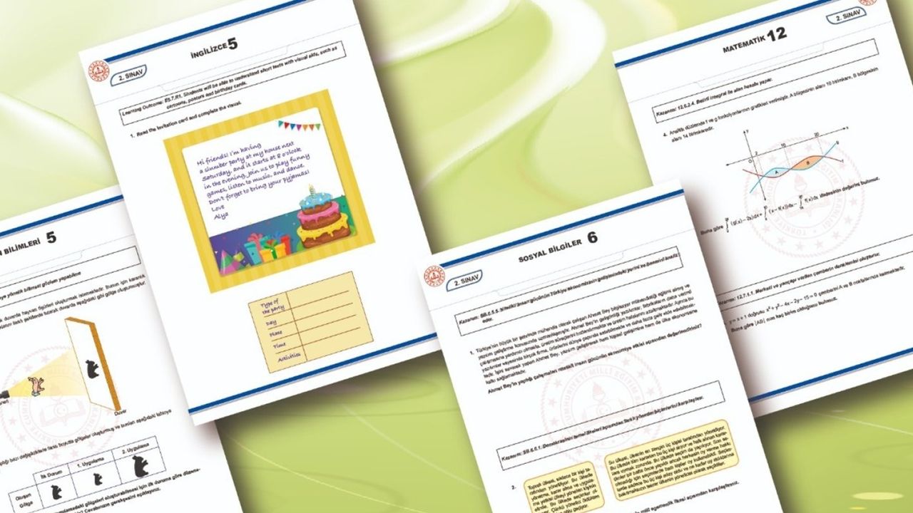Yayımlanan örnek soru kitapçıklarında, 2024-2025 eğitim öğretim yılı 2. dönem 2. yazılı sınavları için konu soru dağılım tablolarında yer alan senaryolardaki bazı kazanım/öğrenme çıktılarına yönelik örnek sorulara yer verildi.
