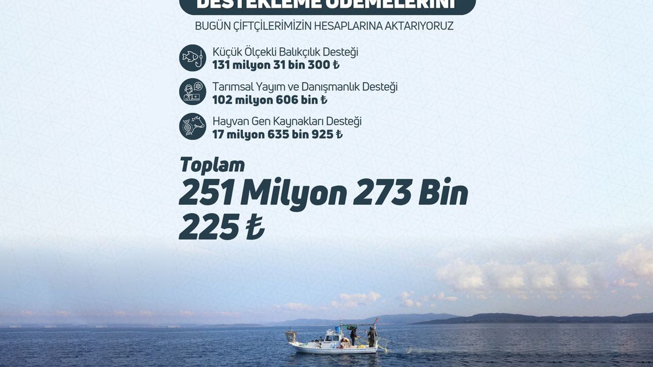 Bakanlıktan yapılan açıklamada, "251 milyon 273 bin 225 TL anlaşmayı destekleme ödemesini çiftçilerimizin ve balıkçılarımızın hesaplarına aktarıyoruz. Hayırlı ve bereketli olsun." ifadelerine yer verildi.