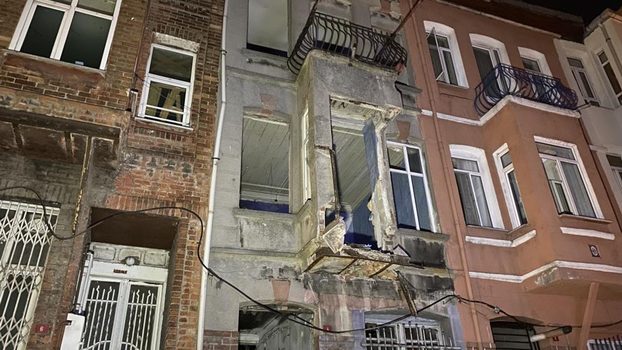 ekiplerinin önceden tedbir aldığı 3 katlı metruk binanın balkonunda henüz
