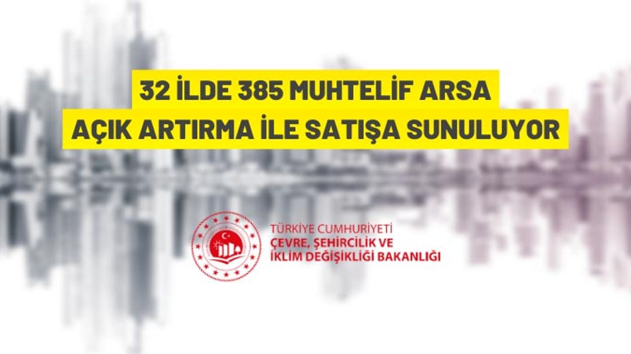 T.C. Çevre, Şehircilik ve İklim Değişikliği Bakanlığı, 32 ilde 385 muhtelif nitelikte arsayı açık artırma ile satışa sundu.