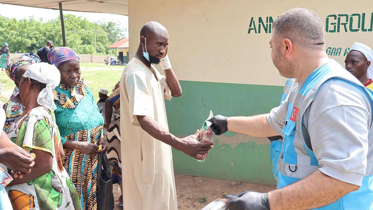 Yardım kuruluşları adına açıklama yapan gönüllüler, "Kurban bağışları için Afrika'nın Nijerya ülkesindeyiz. Bayram namazının ardından kesim işlemini gerçekleştirip buradaki yetim ve ihtiyaç sahibi ailelere dağıttık," ifadelerini kullandı.