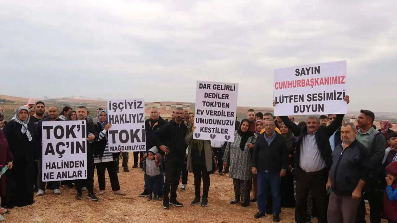 Cumhurbaşkanı Recep Tayyip Erdoğan tarafından 2 yılda tamamlanacağı sözü verilen ancak 4 yıldır bitirilemeyen TOKİ'nin sosyal konutları nedeniyle mağdur olduklarını ifade eden vatandaşlar, inşaat alanında eylem yaptı.