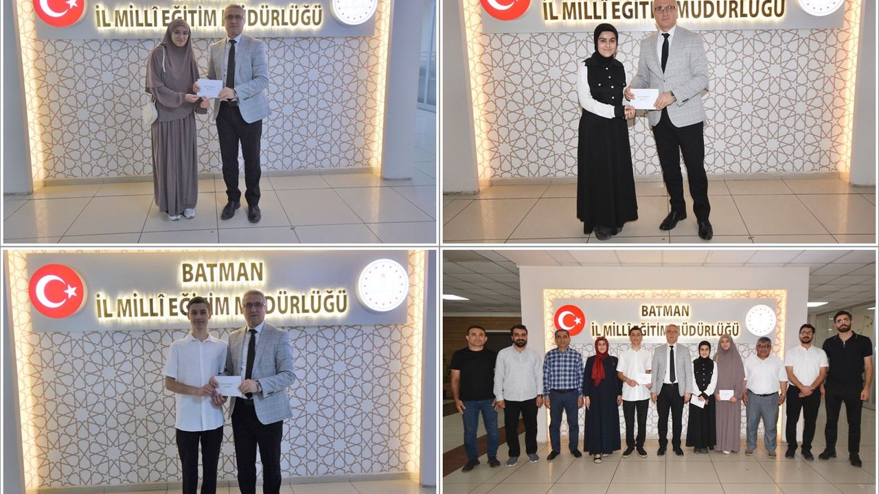 Batman'da bu yıl ilk kez düzenlenen imam hatip liseleri arası "40 Hadis Ezberleme Yarışması"nda dereceye giren öğrenciler, İl Milli Eğitim Müdürü Yaşar Ciğer'i ziyaret etti.