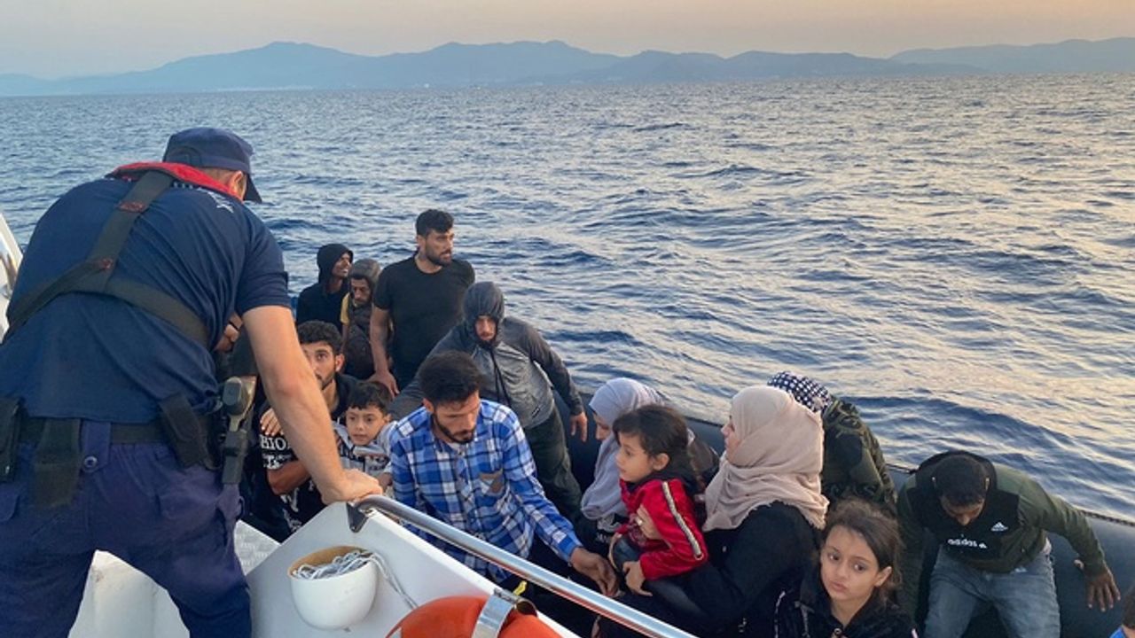 İzmir'in Foça ilçesi açıklarında tespit edilen lastik bot içerisindeki 42 düzensiz göçmen ise yakalandı.