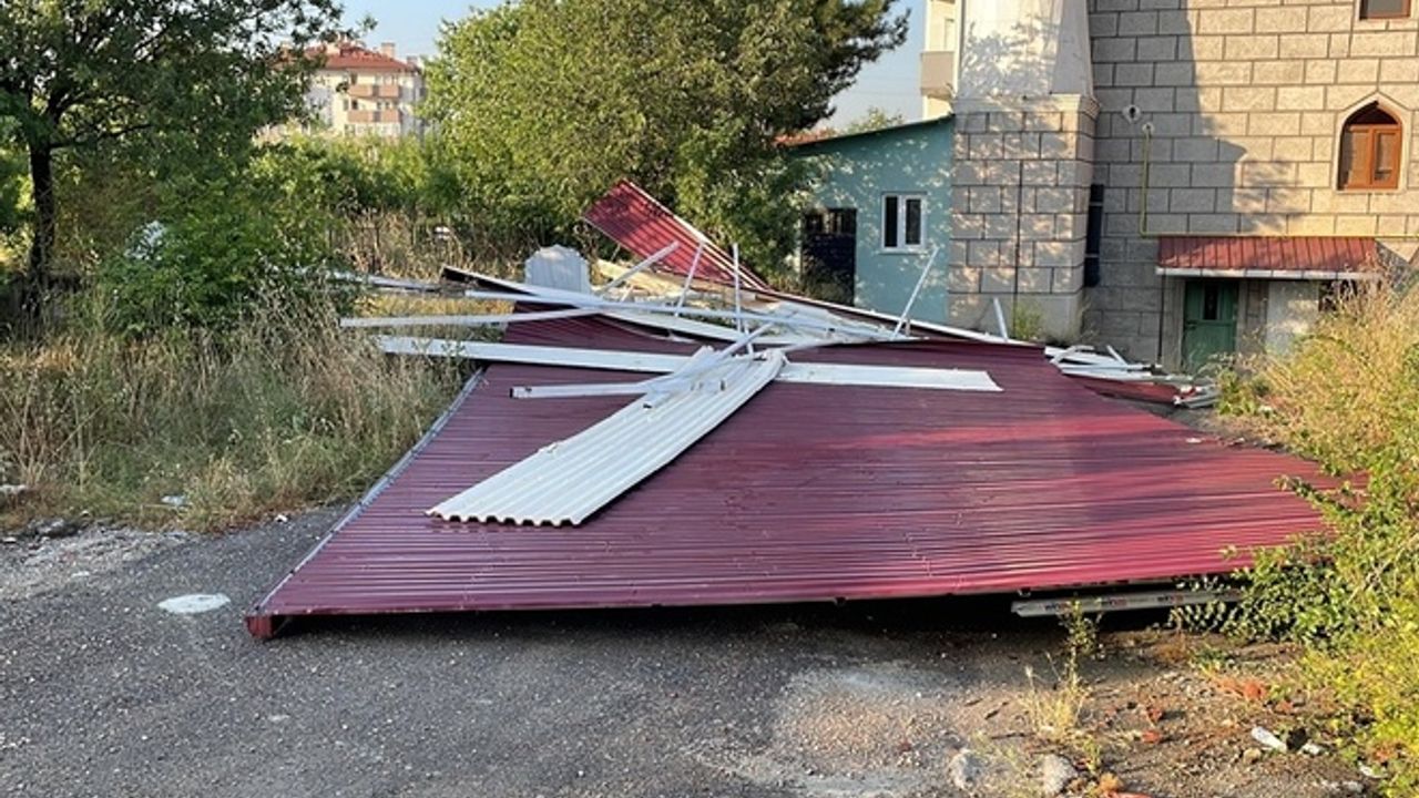 Şiddetli rüzgar nedeniyle Yeşil Mahalle Bilgin Sokak'taki 5 katlı binanın çatısı uçtu. Çatı yaklaşık 50 metre ilerideki Mescid-i Aksa Camisi yanındaki Kapullu Mezarlığı'na düştü.