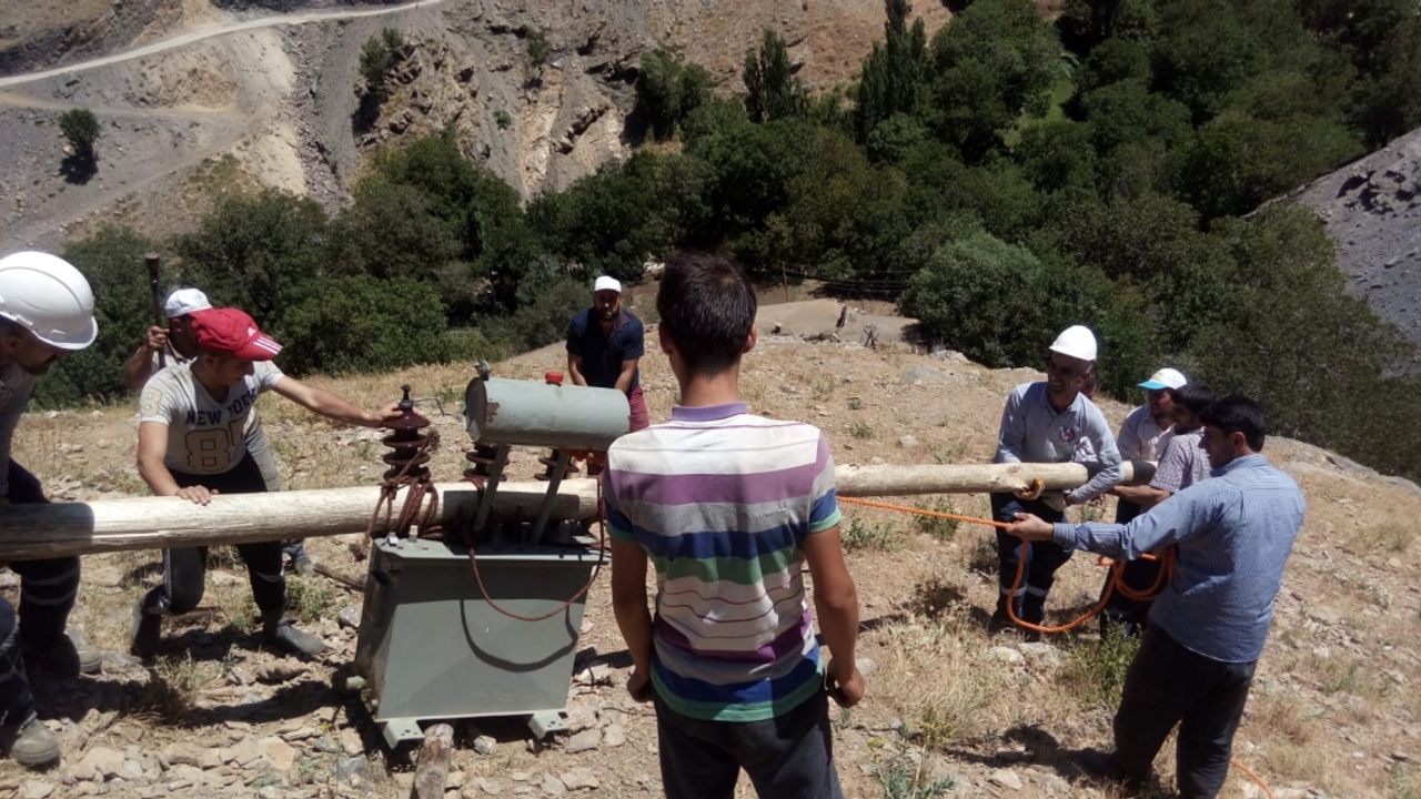 Sarıkız mezrasında yanan trafonun değiştirilmesi çalışmaları sırasında, Dicle Elektrik saha ekipleri 515 kiloluk trafoyu 500 metrelik bir tepede yer alan mezraya 4 saat süren bir çabayla sırtlarında taşımayı başardı.