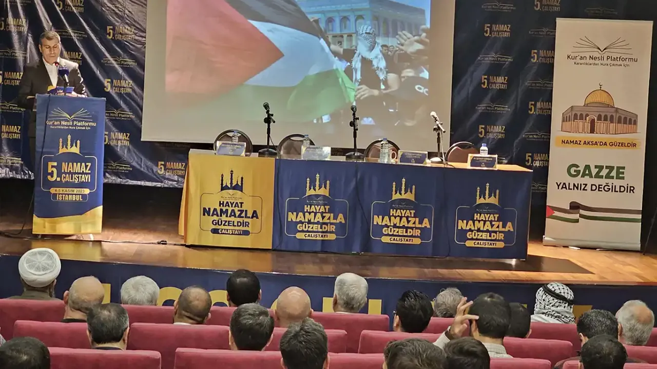 Sütçü, "Bizler Moğol istilası zamanında fare kanının hükmünü tartışanların düştüğü hale düşmek istemiyoruz. Ümmetin gençleri, kadınları erkekleri bugün Gazze’de kanla gusül alırken sular bahsini veya gusül abdestini gündemleştirmekten Allah'a sığınırız. Bugün burada toplanmaktaki ve bu programı gerçekleştirmekteki maksadımız dağılmış, parçalanmış, üzerine ölü toprağı serpilmiş bu ümmetin namazla dirilmesini ve bir olup kenetlenmiş duvar gibi saf bağlamasını sağlamaya gayret etmektir. Bizler istiyoruz ki içimizdeki Kudüs aşkı diri olsun, Selahaddin gibi derdimiz olsun. Bu yüzden namaz diyoruz ve istiyoruz ki yarın engeller ortadan kalkıp kapılar açıldığında namazı kuşanmışlar en önde olsun. Çünkü inanıyoruz ki, zalimler bu kadar azmış ve İslam ümmetine topluca cephe almışken, bu cepheye en büyük hazırlık namazdır. Nitekim o büyük komutan Selahaddin'e, 'ne duruyoruz haydi Kudüs'e yürüyelim' dendiğinde o, 'önce camileri dolduralım demiş' ve ne zaman ki tıpkı ordusu gibi Müslümanların namaz bilincini de takviye ettiğine kanaat getirdiyse o zaman harekete geçmiş ve Kudüs'ü fethetmiştir." diye konuştu.