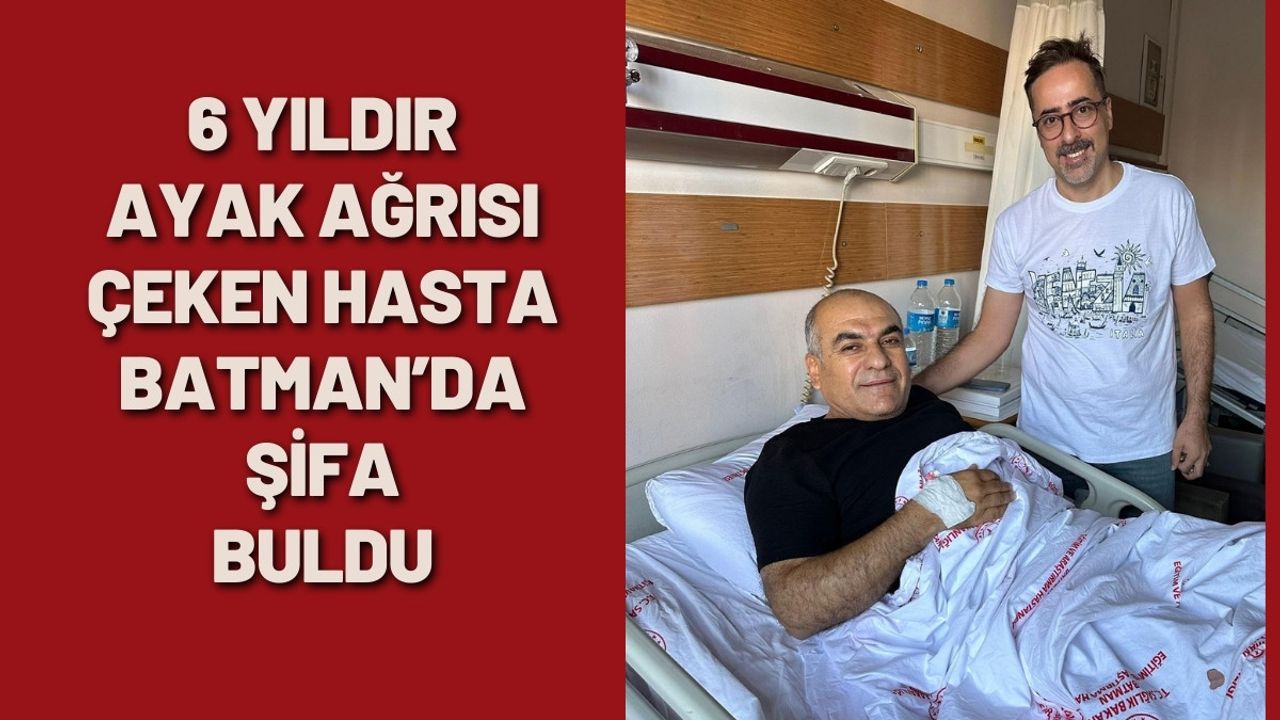 Ayağındaki şiddetli ağrılar nedeniyle yaklaşık 5-6 yıldır yaşam kalitesi düşen Aydın Yurttaş, birçok tedavi yöntemini denemesine rağmen şikayetlerinden kurtulamadı. Farklı hastanelerde çare arayan Yurttaş, son olarak Batman İl Sağlık Müdürlüğü’ne bağlı Eğitim ve Araştırma Hastanesi’ne başvurdu.