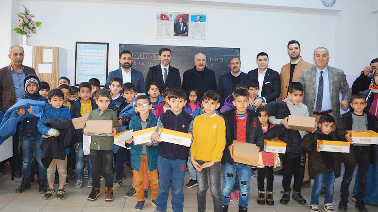 merkezindeki okullarda okuyan ihtiyaç sahibi 600 öğrenciye mont ve bot yardımı