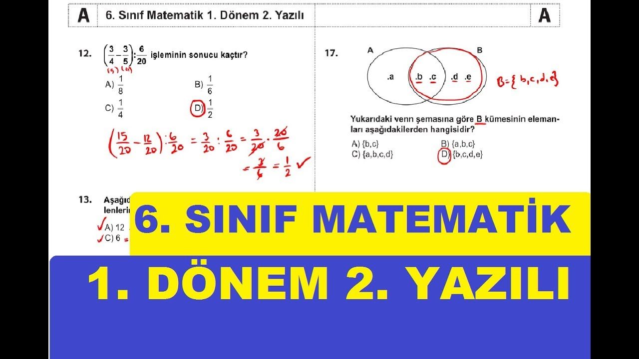 6. Sınıf Matematik 1. Dönem 2. Yazılı Sınavı