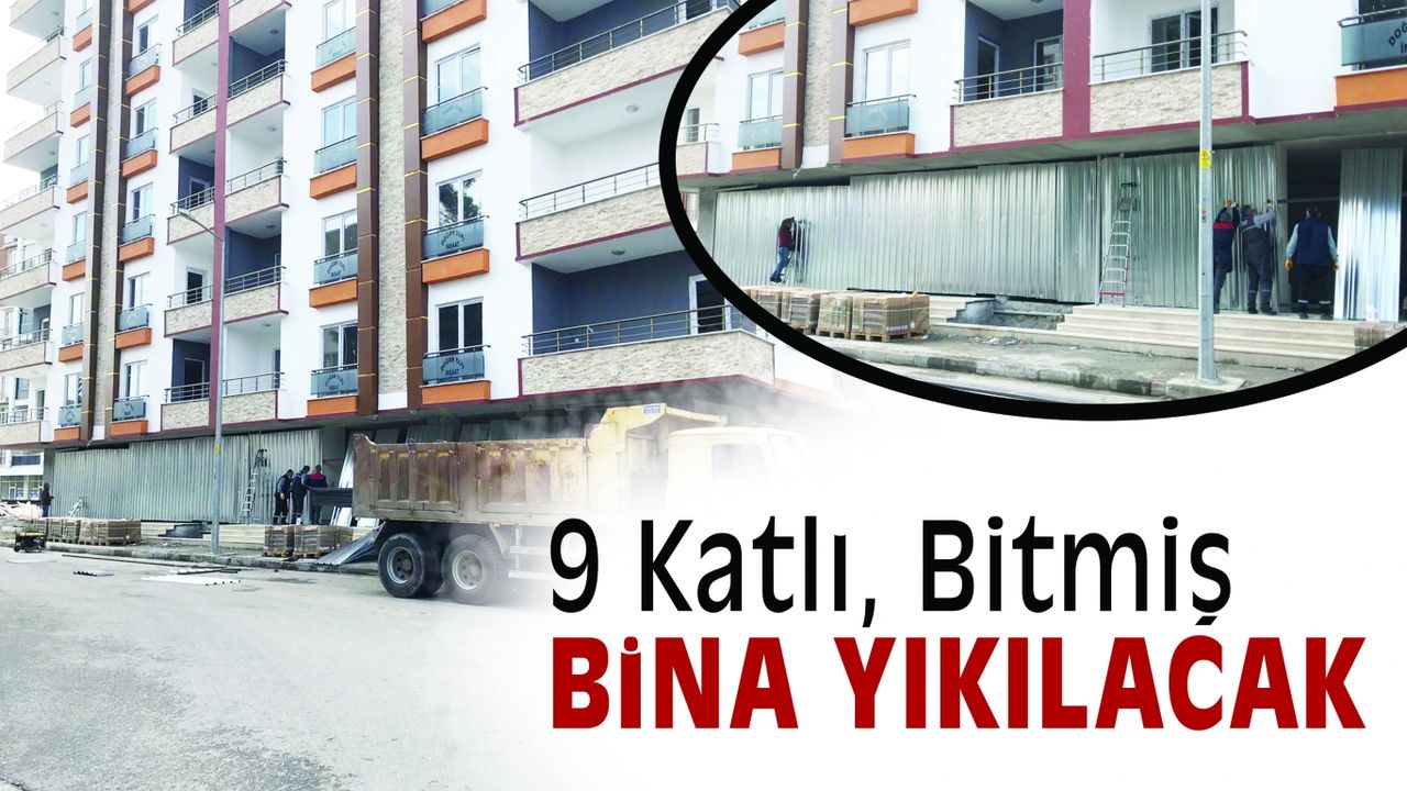 sokakta kaçak olarak yapılan ve bitim aşamasına gelmiş 9 katlı yapının yıkım