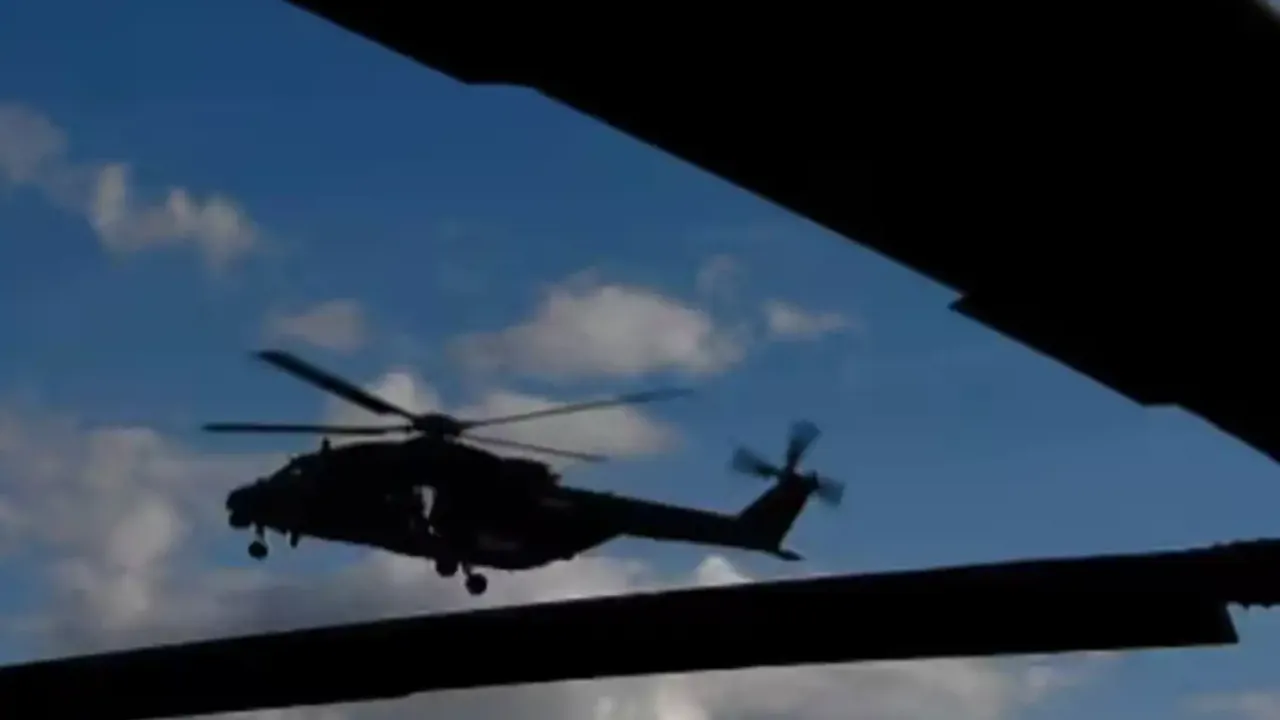 tatbikata katılan Avustralya ordusuna ait MRH-90 Taipan tipi bir helikopterin