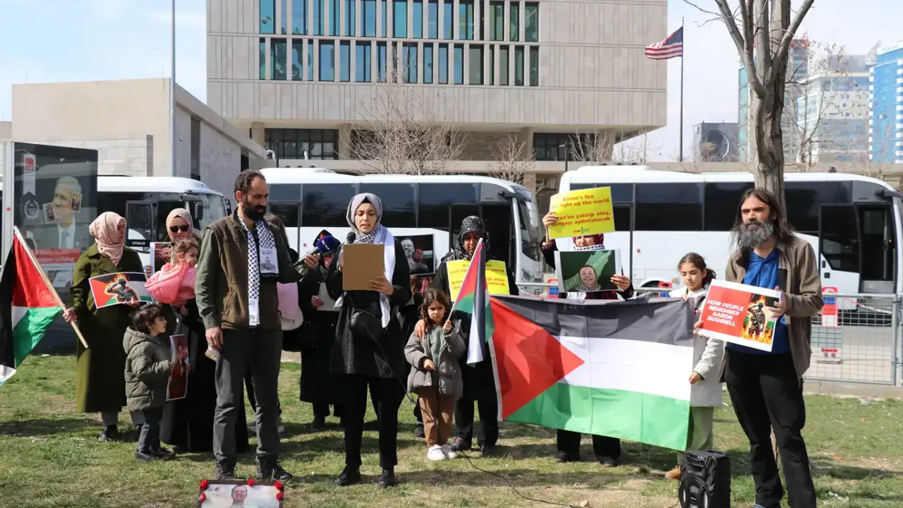 Türkçe açıklamanın ardından aynı metni İngilizce olarak Havva Söylemez okudu. Ardından Gazze için kendini yakan ABD Subayı Aaron Bushnell fotoğrafı ABD Ankara Büyükelçiliği önüne bırakıldı.