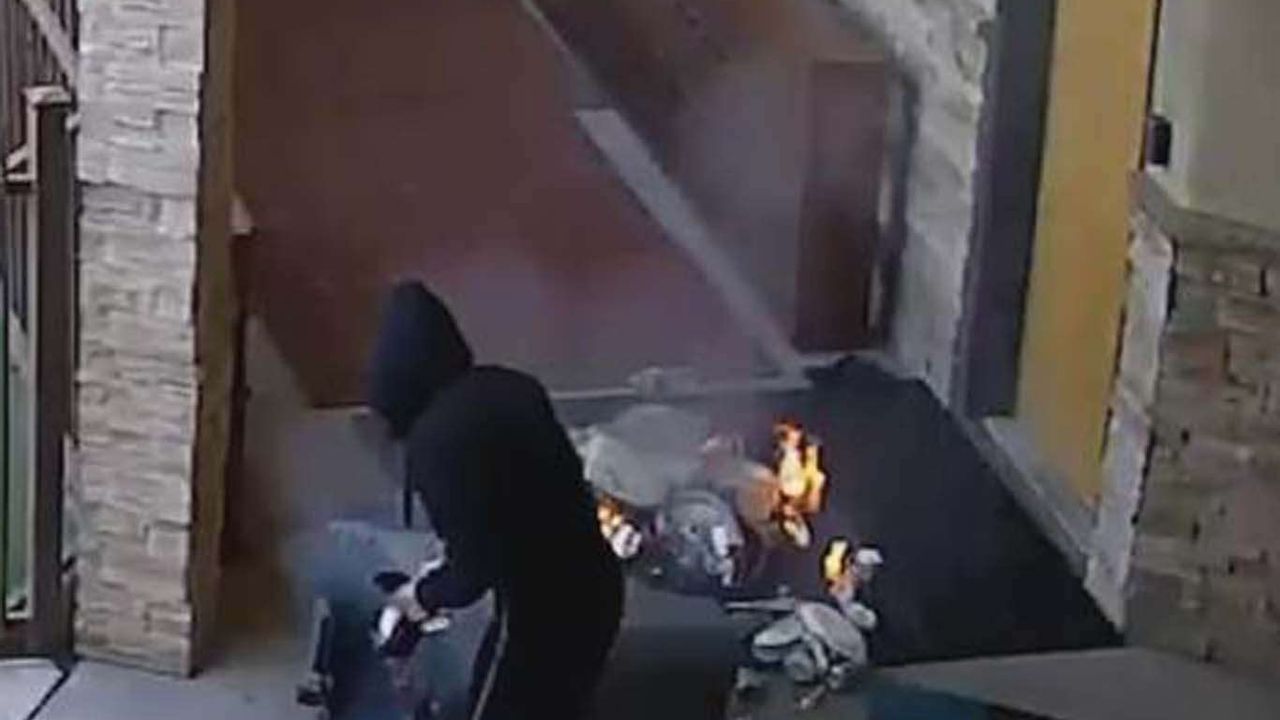 Caminin güvenlik kameralarına yansıyan görüntülere göre, siyah giyimli kapüşonlu bir kadın, önce caminin çocuk oyun alanında küçük bir ateş çıkarıyor. Kadın, daha sonra çöp kutusunu caminin giriş kapısına getirerek içindekileri ateşe verdikten sonra deviriyor. Çıkan yangının ardından kadın olay yerinden uzaklaşıyor.