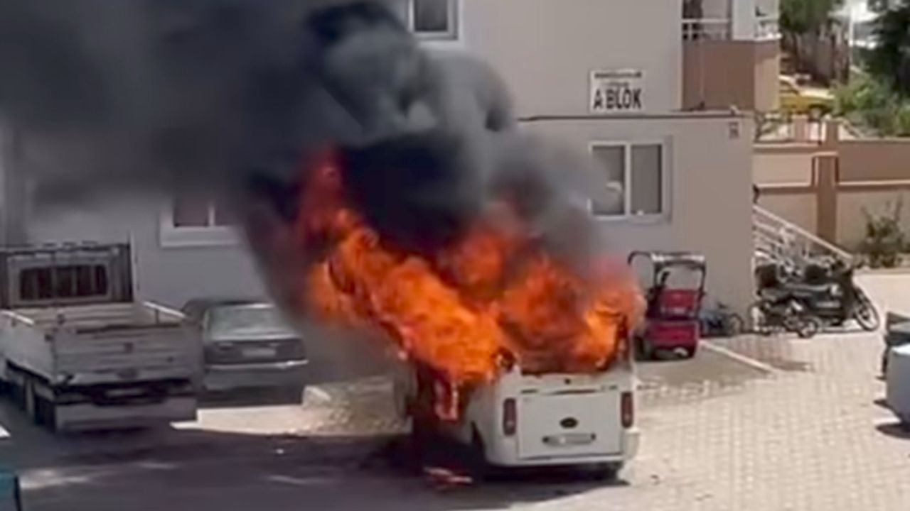 Edinilen bilgilere göre, park halindeki minibüste henüz belirlenemeyen bir nedenle yangın çıktı.