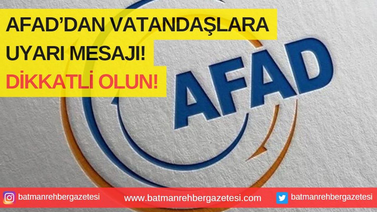 Afet ve Acil Durum Yönetimi Başkanlığı’ndan (AFAD) Batmanlıvatandaşların cep telefonlarına gönderilen kısa mesajda; (SMS) “Meteorolojiye göre