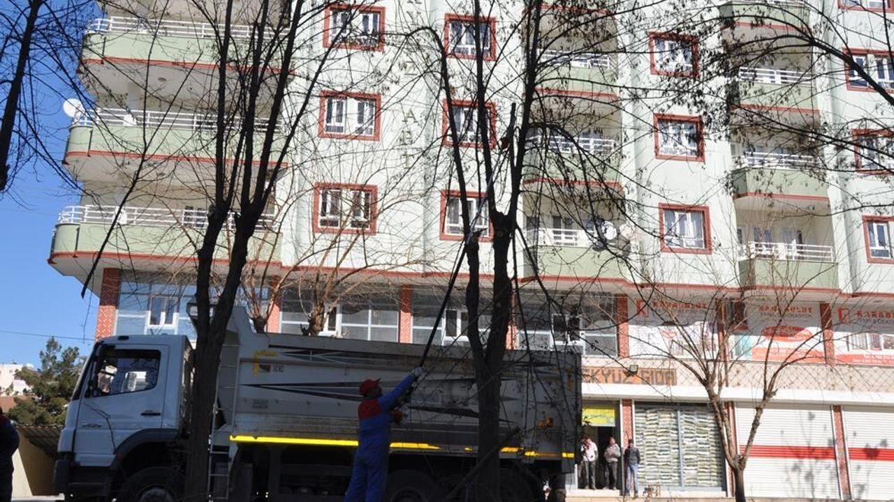 Ağaçların gelişimlerini kuvvetlendirip, sağlıklı kılmak ve çiçeklenmenin miktar ve kalitesini yükseltmek amacıyla başlanan budama işlemlerinde; kuru ve elektrik tellerine uzanan dalların budanma çalışmaları da yapılıyor. |Mehmet Emin Uraz