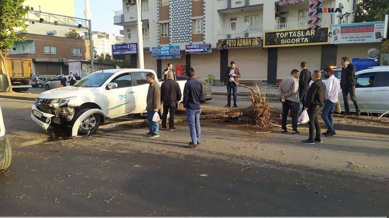 plakalı pikap sürücüsü, direksiyon hâkimiyetini kaybederek refüjdeki bir ağaca