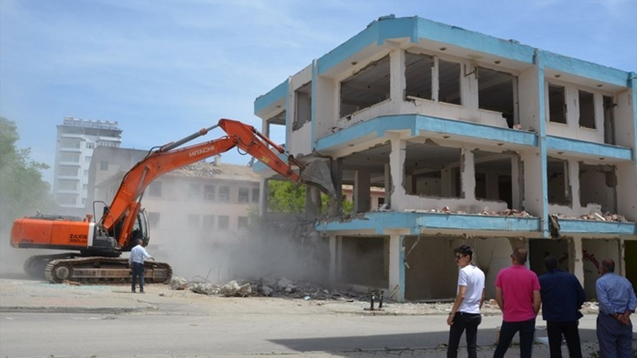 Bu kapsamda depremde hasar alan Afşin Vergi Dairesinin de bulunduğu eski belediye pasajında yıkım ve enkaz kaldırma çalışmaları başladı.