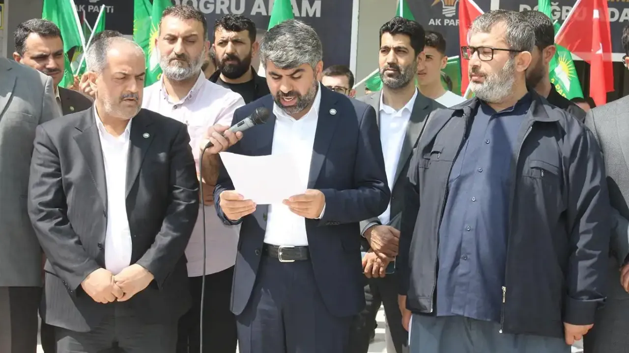 Basın açıklamasını, AK Parti listelerinden seçimlere giren HÜDA PAR Mersin Milletvekili Adayı Faruk Dinç okudu.