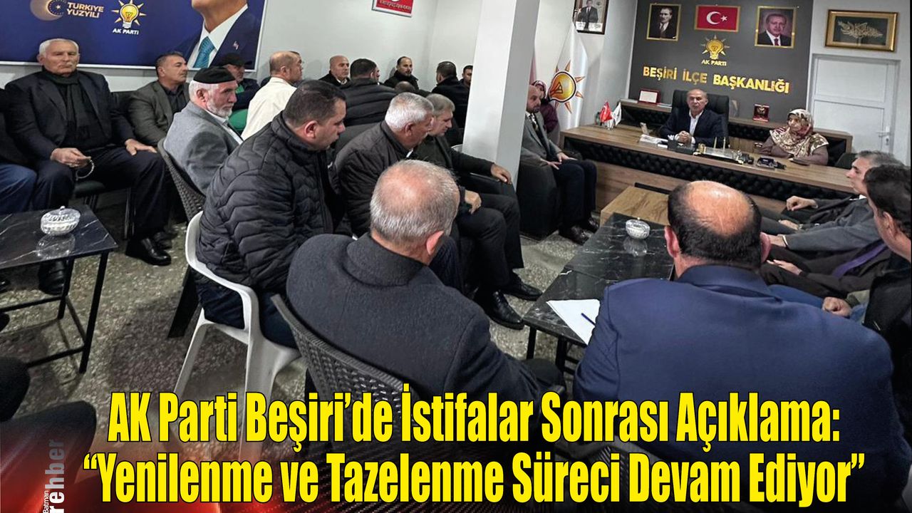AK Parti Beşiri İlçe Teşkilatı'nda yaşanan bazı istifaların ardından İlçe Başkanı Hasan Okay, teşkilat çalışmaları hakkında açıklamalarda bulundu. Başkan Okay, AK Parti'nin her zaman dinamik bir yapıya sahip olduğunu ve yenilenmeyi esas aldığını vurguladı.