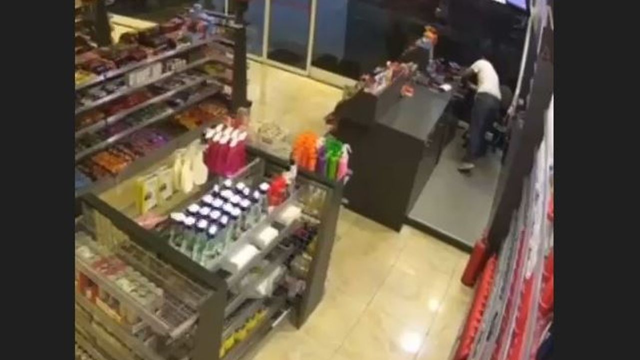 hırsız, market içerisinde bir anlık boşluğu fırsat bilerek kasaya yöneldi.
