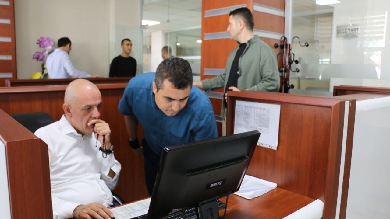 Yaptığı denetimlerde vatandaşların dilek, talep ve şikayetlerini ilgili birimlere ileten Alo 153 Beyaz Masa birimindeki çalışmaları yerinde inceleyen Başkan Vekili AKSOY, birim çalışanlarından merkezin işleyişine yönelik bilgi aldı.