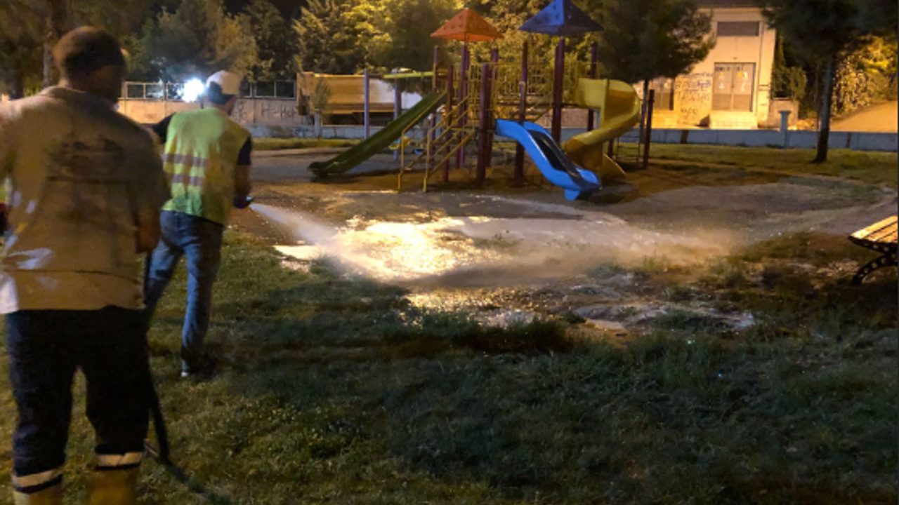 Çocuk parklarında hijyenik koşulların oluşturulması için harekete geçen ekipler Batman'daki tüm oyun parklarını temizliyor.