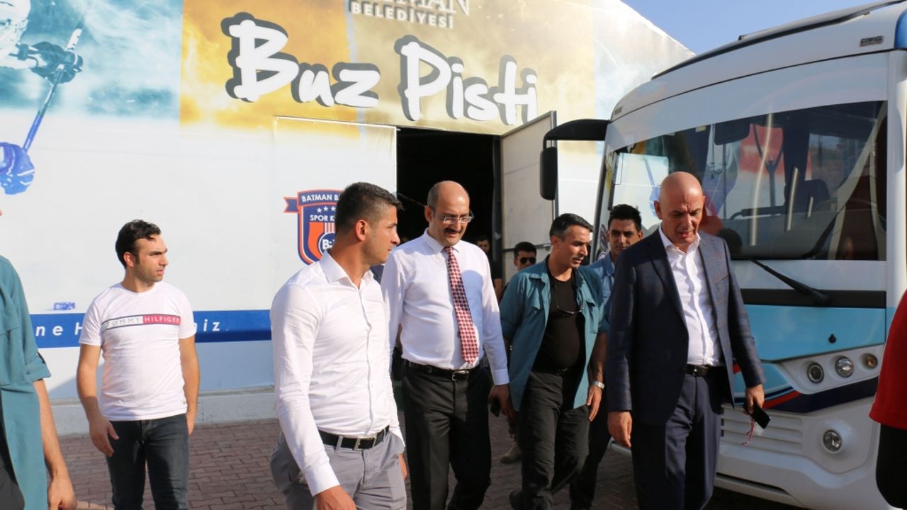 Ziyaretine gelen Kurtalan Kaymakamı İhsan Emre Aydın'a Spor Kompleksi'nde yapılan çalışmaları anlatan Başkan Vekili Aksoy, yüzme salonu, buz pisti, salon sporlarının yapıldığı alanları gezdi.