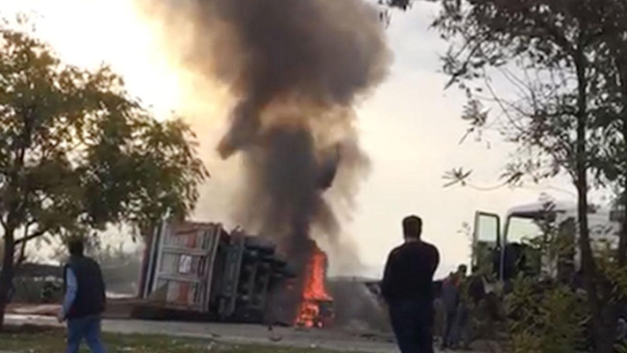 öğrenilmeyen kamyon, sürücüsünün direksiyon hâkimiyetini kaybetmesi sonucu