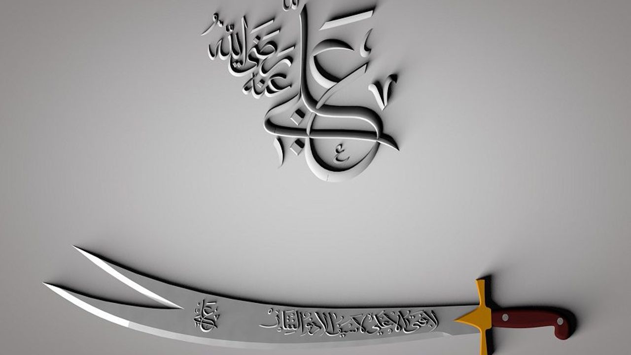 "Lâ fetâ illâ Ali, Lâ seyfe illâ Zülfikâr." (Ali'den başka yiğit, Zülfikâr'dan başka kılıç yoktur.)