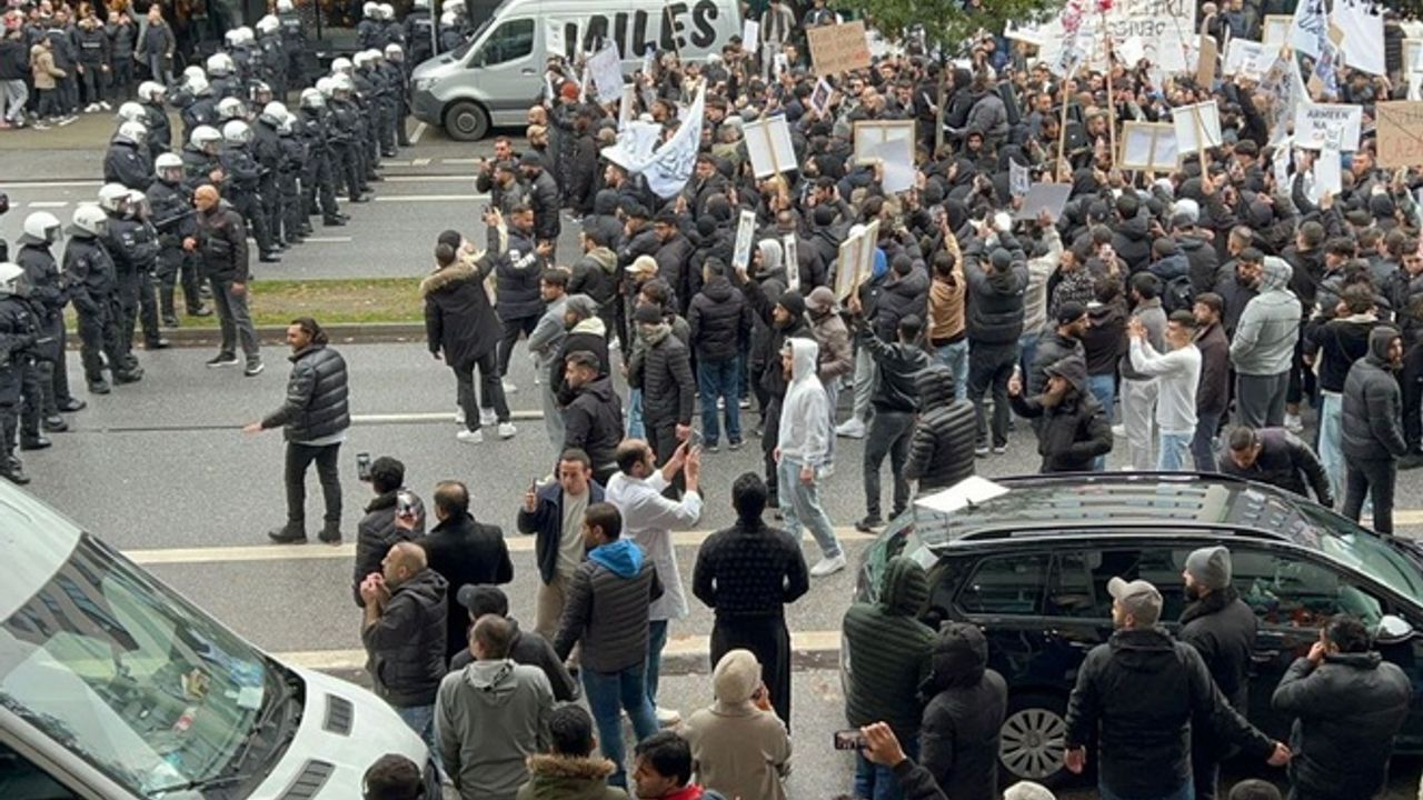 "Muslim Interaktiv" tarafından yapılan eylem çağrısının ardından yüzlerce kişi, Gazze Şeridi'ne yönelik saldırılarını protesto etmek için bir araya geldi.