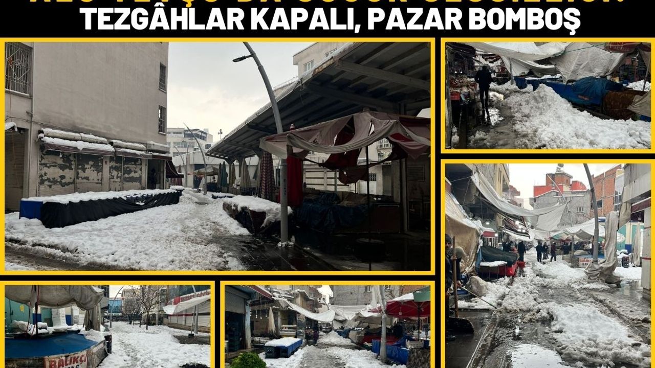 Batman’da günlerdir süren yoğun kar yağışı ve aşırı soğuklar, kent yaşamını olumsuz etkilemeye devam ediyor. Bu durumdan en çok etkilenen yerlerden biri de kentin en canlı pazarlarından Alo Tevşo oldu. Kar ve buzlanma nedeniyle birçok yolun kapalı olması, vatandaşların evlerinden çıkmasını zorlaştırırken pazarın eski kalabalık günlerinden eser kalmadı.