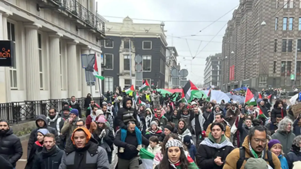 Kalabalık grup, Müzeler Meydanı'ndan Dam Meydanı'na kadar yürüyerek, uluslararası topluma, işgal rejimine destek vermeme çağrısında bulundu.