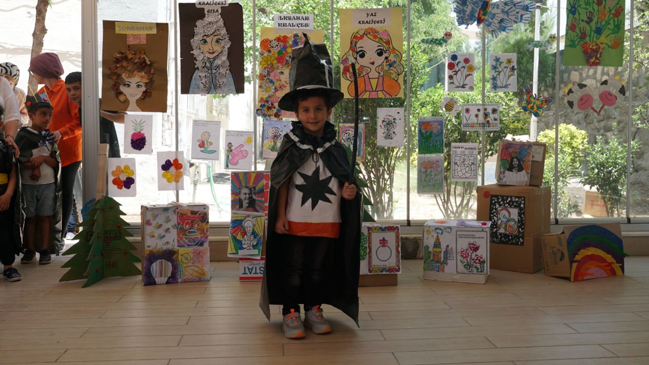 ürünleriyle hazırlamış olduğu kostüm defilesini velilerle beraber izleyen