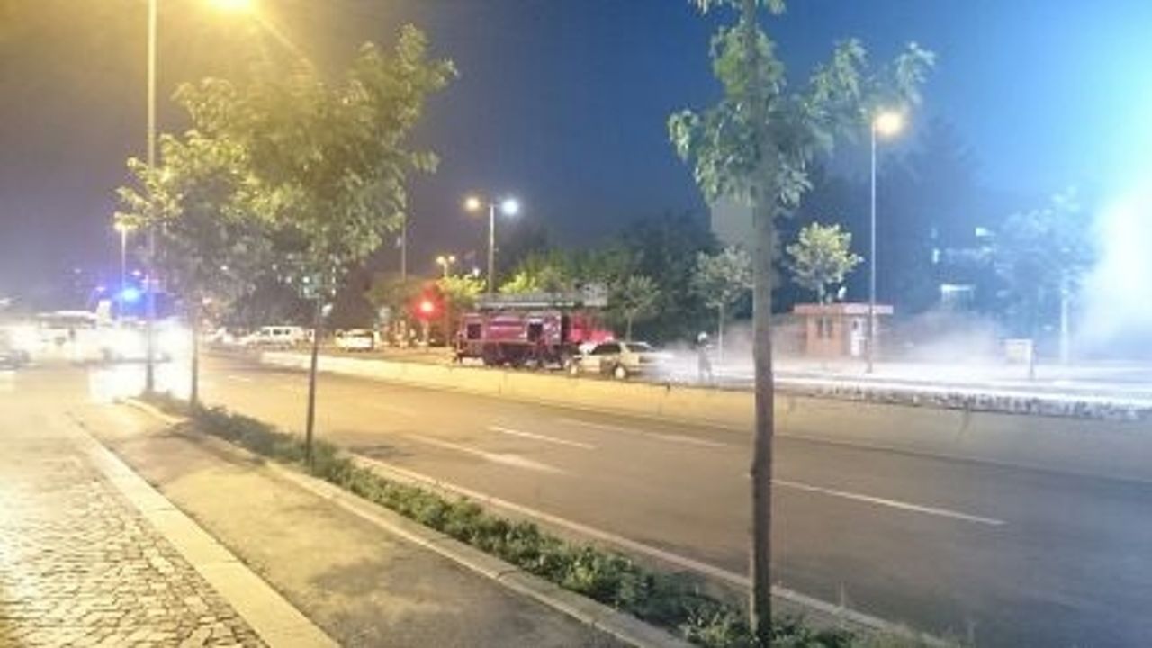 Kısa sürede alevlere teslim olan otomobile, Emniyet Müdürlüğüne ait TOMA ve itfaiye ekipleri müdahale etti. Yangının Emniyet Müdürlüğü ve polisevinin önünde çıkması nedeniyle güvenlik güçleri çevrede önlem aldı.