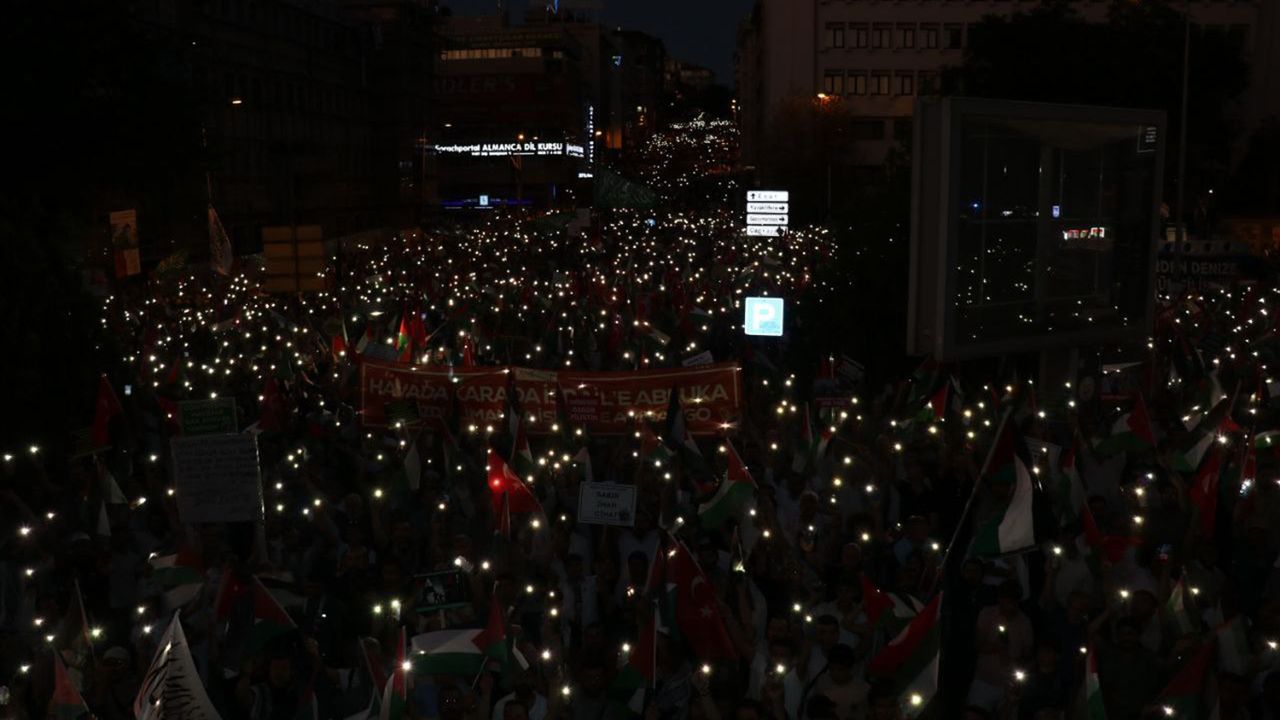 Açıklamada, Türkiye'nin başkenti Ankara'da, Anadolu'nun tüm illerinden "Büyük Gazze İttifakı" adına yollara düşen, tarihi Gazze ribatına Anadolu'nun dört bir tarafından gelen kardeşler ve özellikle 674 gündür Aksa Tufanı'nın anlam ve ruhunu kuşanarak ANFİDAP ruhunu inşa eden Ankara halkı selamlandı.