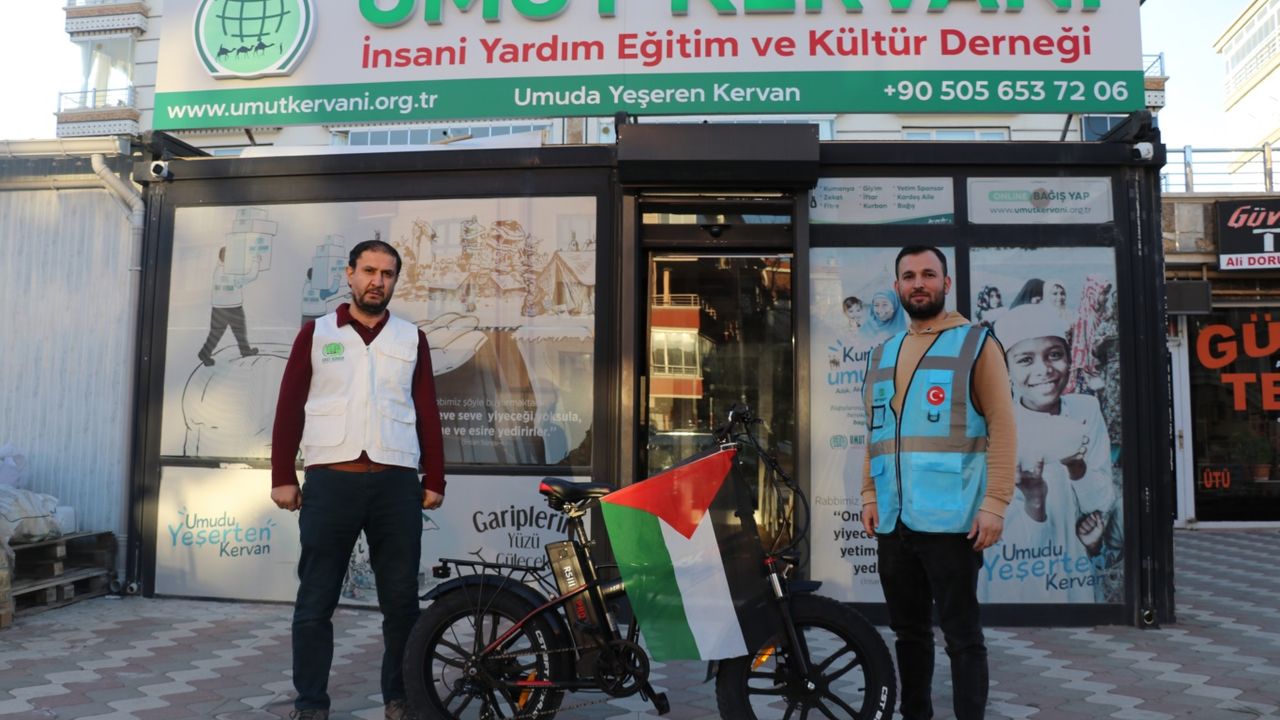 Gazze'de yaşanan insanlık dramı sürerken, Ankara'da ismini açıklamak istemeyen bir hayırsever, yaklaşık 30 bin lira değerindeki elektrikli bisikletini infak ederek Filistin'deki mazlumlara gönderilmesi için Umut Kervanı Derneği'ne teslim etti.