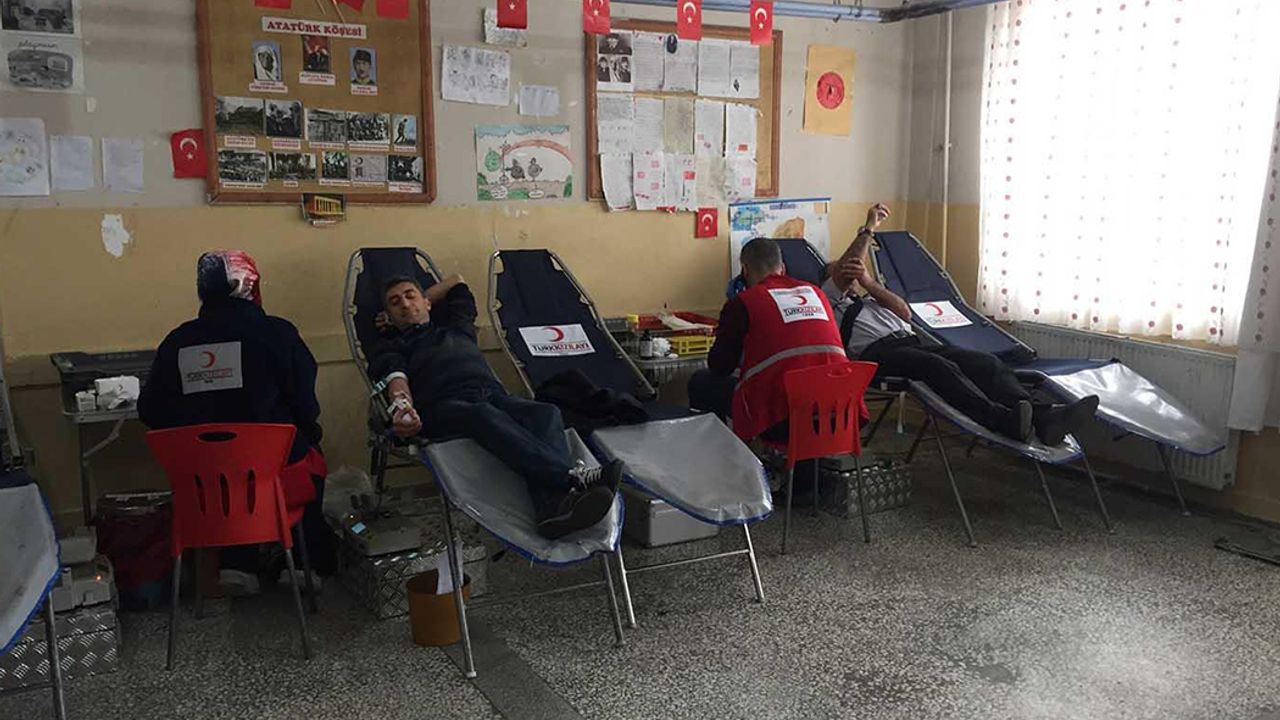 sonra okul öğretmenleri ve öğrenci velilerinin katılımıyla kan bağış kampanyası