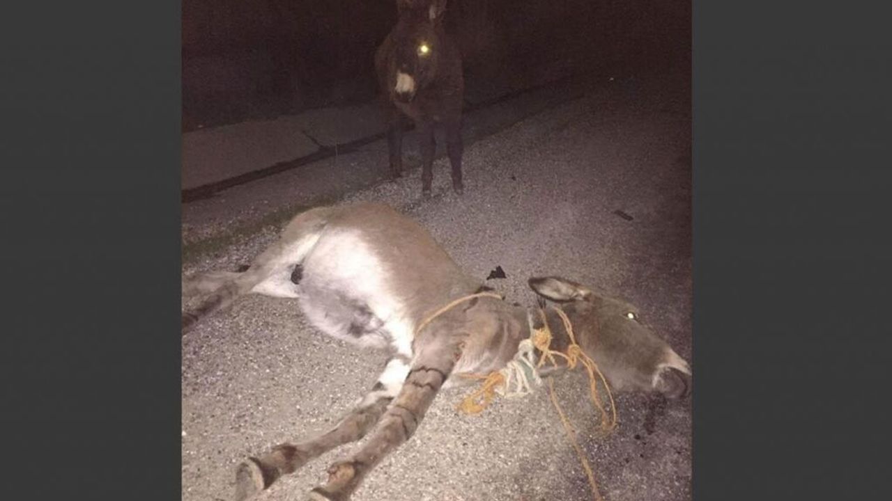 Eşeğin 3 aylık sıpasının, cadde üzerinde ölen annesinden ayrılmaması dikkat çekerken, bu olay görenleri duygulandırdı.