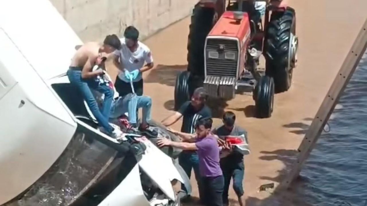 Görgü tanıkların ifadesine göre, Bostan Caddesi'nde hızla seyreden ticari araç, direksiyon hakimiyetini kaybederek korkulukları parçaladıktan sonra İluh Deresi kanalına düştü.