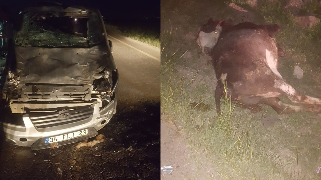 Kazada aracın çarptığı bir inek de telef oldu. (İLKHA)