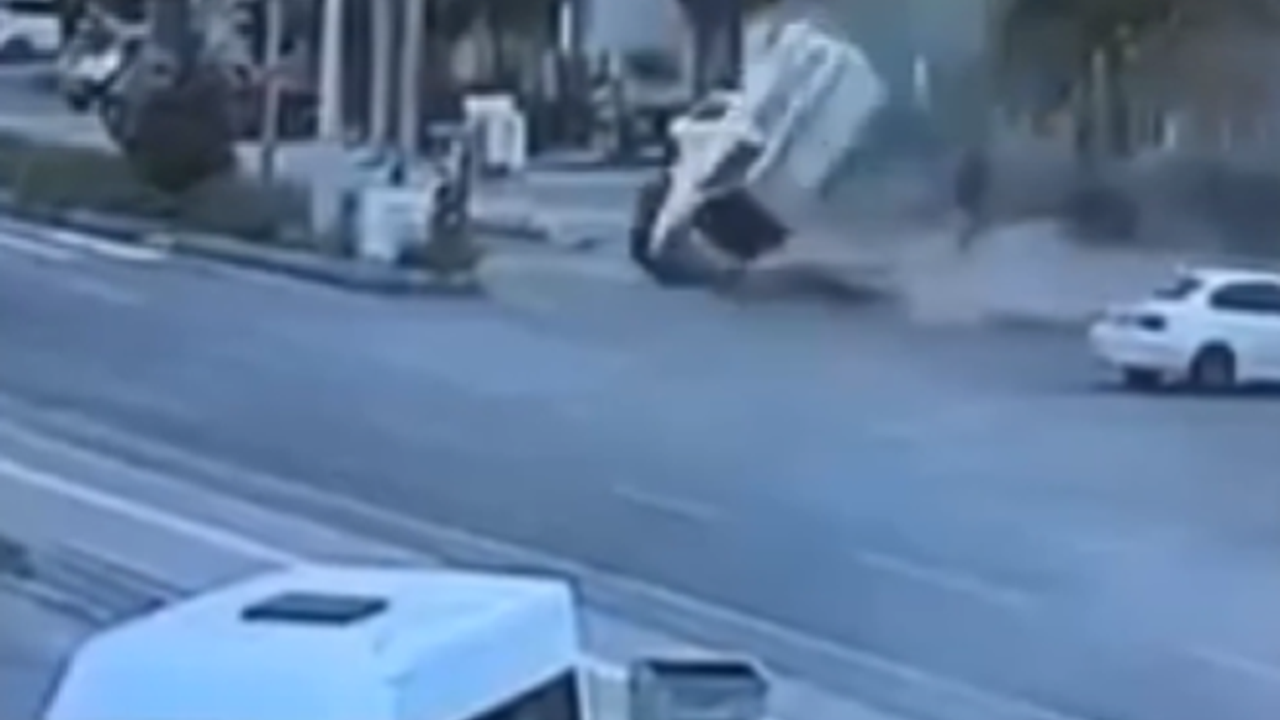 Çarpışmanın etkisiyle hafif ticari araç takla attı.