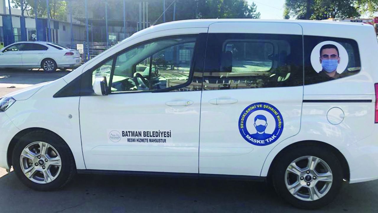 Belediyenin değişik birimlerinde kullanılan 55 binek araca koronavirüs salgınında maske kullanımının öneminin hatırlatıldığı görsellerden olumlu geri dönüşler alındığını belirten Makine İkmal Bakım ve Onarım Müdürlüğü yetkilileri, bu çalışmaların araçların giydirilmesinin yanı sıra, Belediyenin tüm birimlerinde de yaygınlaştırılarak hizmet birimlerinin girişlerine de asılacağını belirtti. M. EMİN URAZ