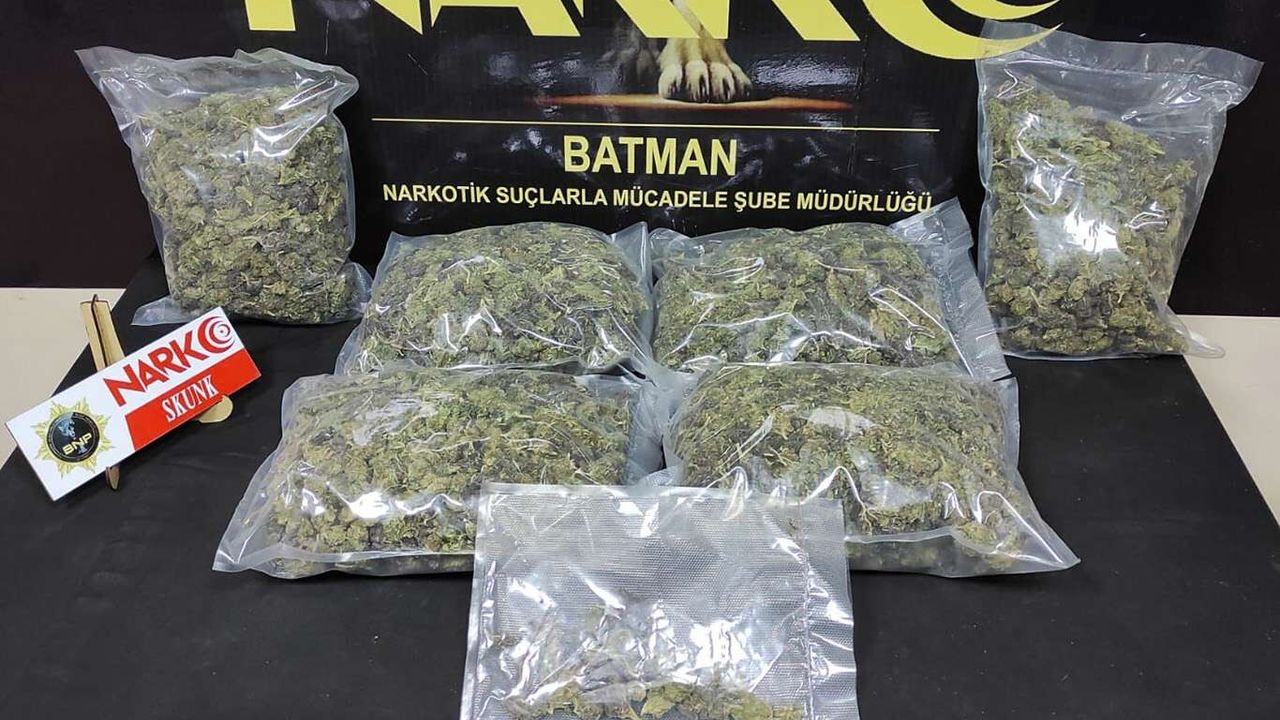 yapılan aramada, 3 kilo 264 gram esrar maddesi ele geçirildiği belirtildi.