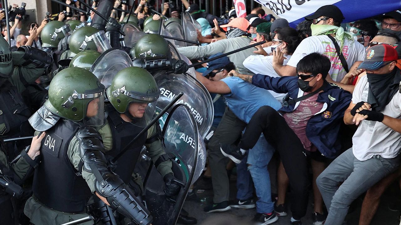 Protestocular, ellerinde taşıdıkları döviz ve pankartlarda Milei hükümeti karşıtı sloganlar attı.