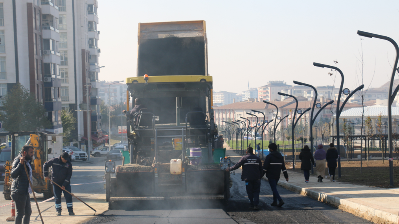 ile birlikte sıcak asfalt serimi gerçekleştiren Belediye Fen İşleri Müdürlüğü