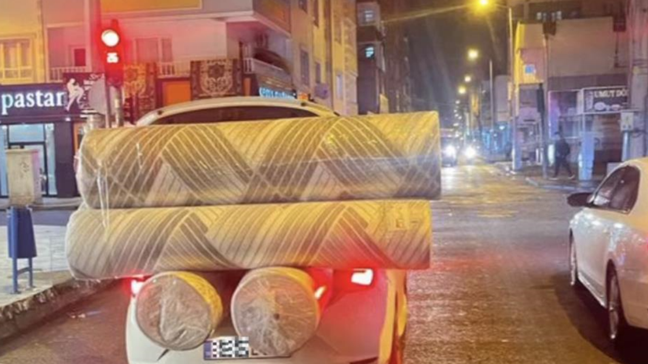 bagajının kapanmayacağı bir şekilde yük taşıdı. Trafik kurallarını ihlal edip